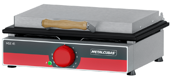 Base superior e base inferior em aço carbono SAE 1020 de 2,65 mm, resistências em aço inoxidavel, termostatos para controle de temperatura, pés de borracha anti derrapante com regulagem e estrutura em aço inox 430 escovado.